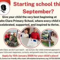 Published 19/09/25If your child is due to start reception in September 2026, please attend our Open Day to find out why John Clare Primary School is the PLACE TO BE!